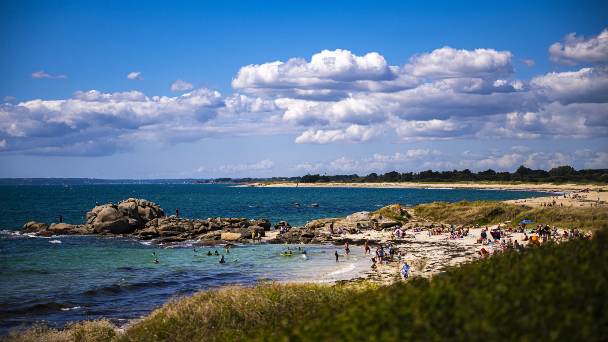 La plage de Pouldohan, avec ses eaux claires et son ambiance paisible, est un véritable havre de détente, apprécié des familles et des passionnés d’activités nautiques.